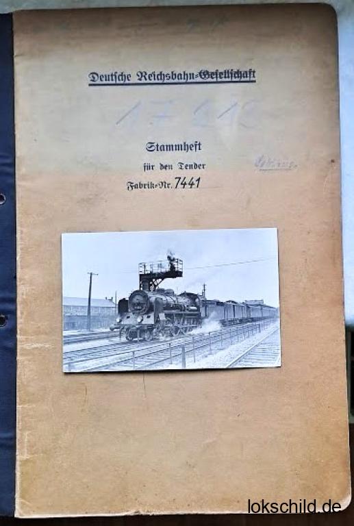 - aus dem Betriebsbuch das original Tenderheft (Erstschrift DRG ab 1927)
