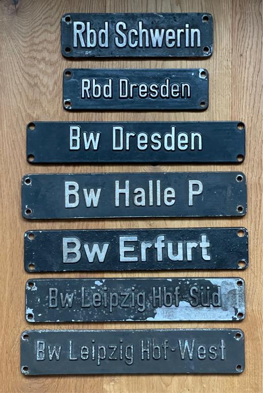 Biete die auf den Bildern zu sehenden Bw- und Rbd-Schilder der Deutschen Reichsbahn ab. Alles Originale mit Betriebsspuren. Bei Interesse einfach melden.