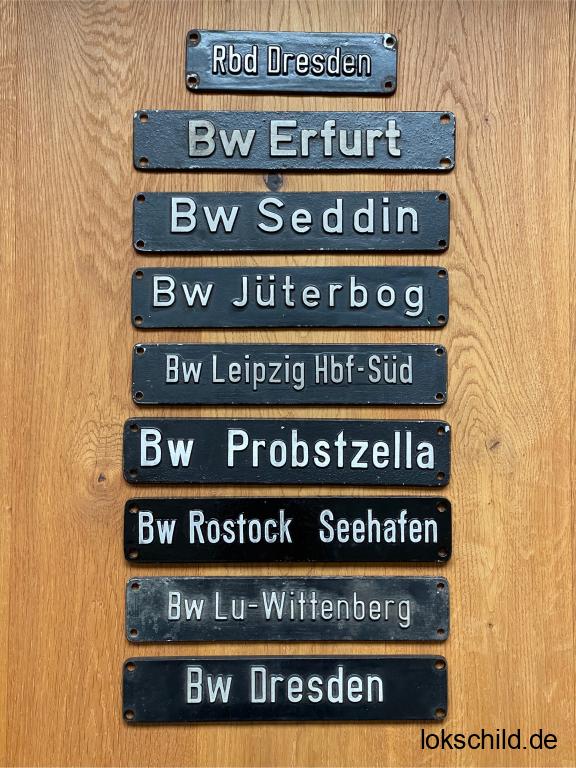 Biete hier die originalen Bw und Rbd-Schilder wie auf den Bildern zu sehen. Es sind fast alle Lagerschilder, hergestellt für die DR in der Gießerei S & M Schilder- und Reliefgießerei Berlin.