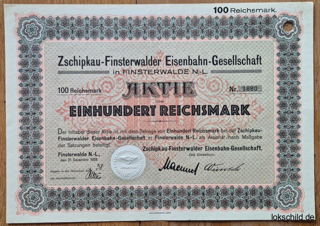 40.00 € Aktie der Zschipkau-Finsterwalder Eisenbahn Gesellschaft