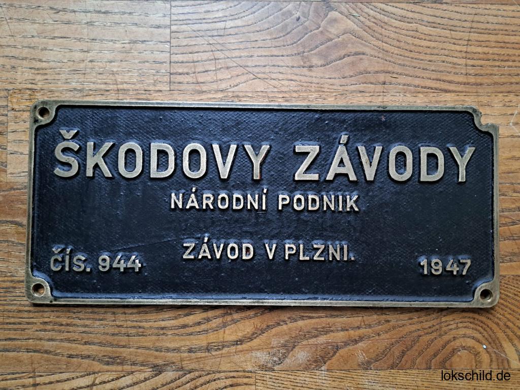 Ich biete ein authentisches Fabrikschild von „SKODOVY ZAVODY“ zum Verkauf oder Tausch an. Das Schild mit der Aufschrift „Skoda 944“ stammt vom Tender der Baureihe 935.0. Der Tender war vermutlich an eine Dampflokomotive der Baureihe „Albatros“ (498.018) angeschlossen. Originallackierung, schöne Patina, Messschild.