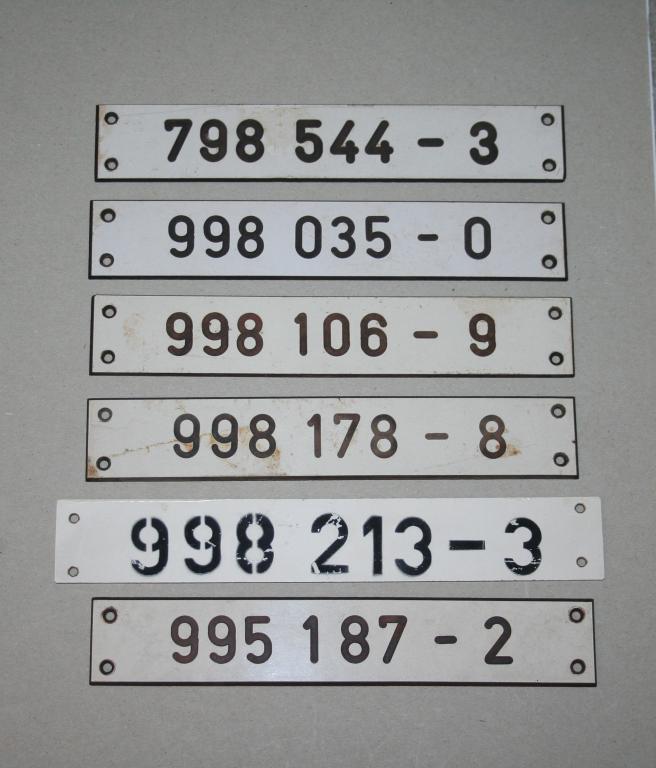 ich bin weiterhin auf der Suche nach Lokinnenschildern "Pertinax-Kunststoff graviert" der DB Baureihen 211, 212, 213, 515/815 sowie Köf II (321-324) und möchte hier noch mal einen Versuch starten. Für einen möglichen Tausch stehen die hier abgebildeten Schilder zur Verfügung. Gerne auch Schilder zum Kauf anbieten.